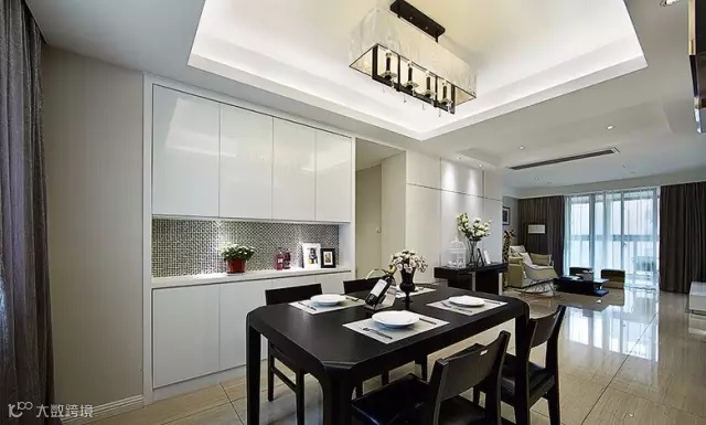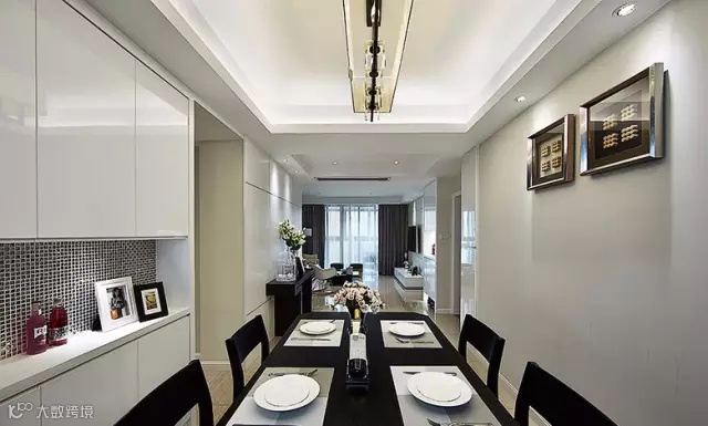 ▲ 餐厅黑色餐座椅配白色餐边柜