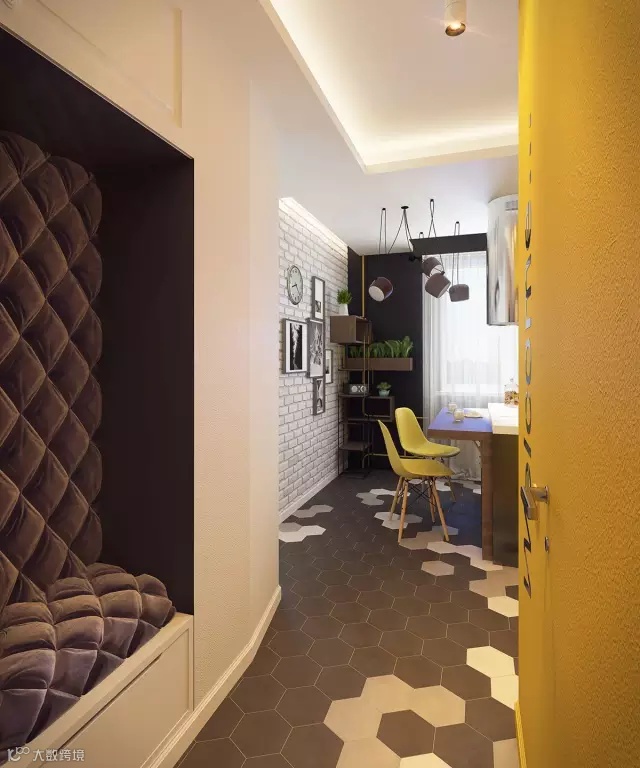 第三个案例是在圣彼得堡、面积为37.5㎡的一个房屋。设计师尽可能地最大化利用空间,让视觉美感和居住舒适同时满足。通过走廊长凳、厨房白砖墙等这些小细节,使房屋更显优雅。这种怎么看都不显小的设计方式,将会持续一段时间内非常受欢迎。