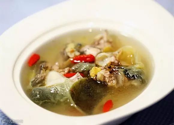 材料:水鱼1条、姜适量、盐适量、花旗参适量、枸杞适量、五花肉适量