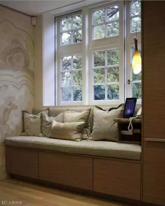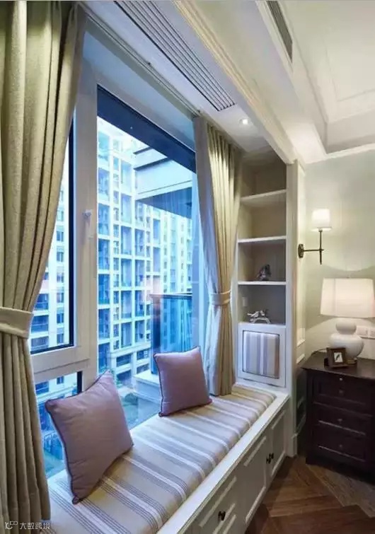 这种飘窗相对来讲比较常见,看书发呆什么超有feel,家里有客人来也可以在此落座,绝对是一件让你的朋友为之羡慕的事。