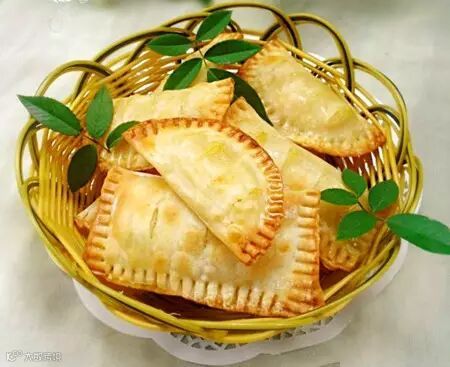 菠萝0.25个、饺子皮3张、鸡蛋1个、芝麻20克