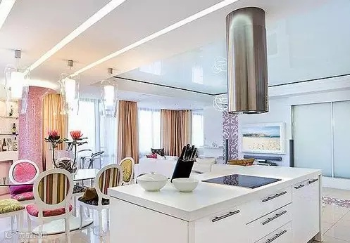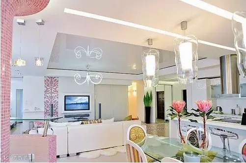 透明的吊顶材质增加了空间的扩张感,整个空间有了立体的感觉,客厅部分用花砖类似于马赛克区分,非常特别。