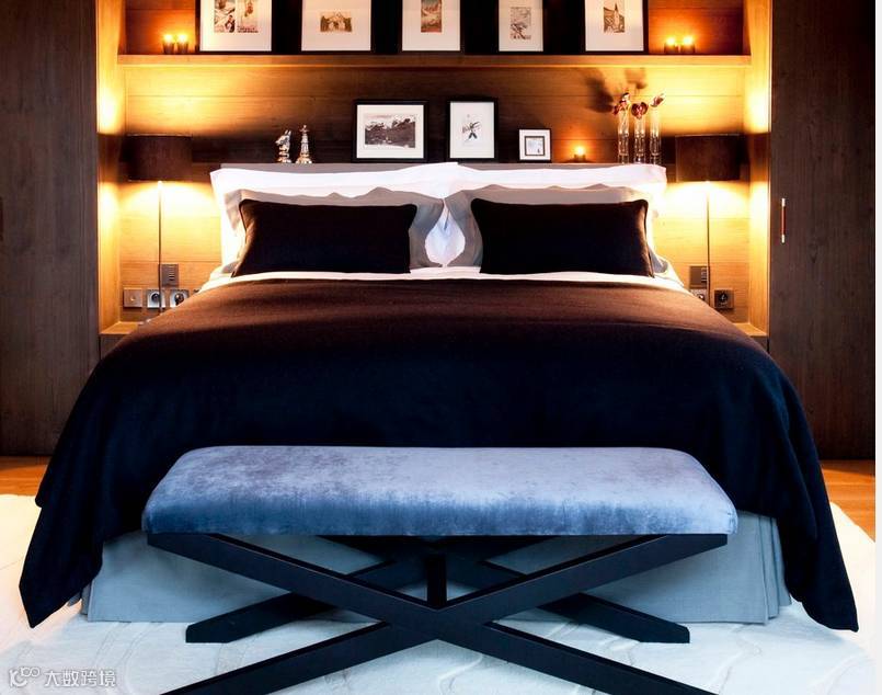 可用壁灯、落地灯来代替室内中央的顶灯。壁灯宜用表面亮度低的浪射材料灯罩,这样可使卧室显得光线柔和,利于休息。床头柜上可用子母台灯,大灯作阅读照明,小灯供夜间起床用。另外,还可在床头柜下或低矮处安上脚灯,以免起夜时受强光刺激。