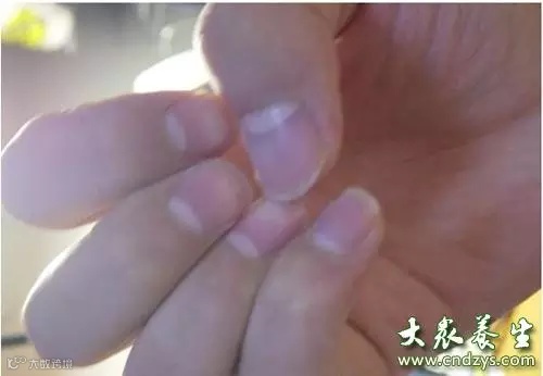 4、半月痕的颜色:(1)奶白—表示正常,这类人精力强壮,体质好,身心健康。(2)灰色—表示精弱,影响脾胃消化吸收功能的运行。(3)粉红—与甲体颜色分不清,表示脏腑功能下降,容易引起糖尿病、甲肮等病症。(4)紫色—容易引起心脑血管血液循环不良,供血供氧不足,易头晕等。(5)黑色—多见于严重的心脏病、肿瘤或长期服药引起药物和重金属中毒。
