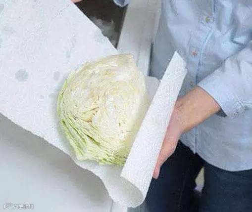 蔬菜保鲜时,经常用保鲜膜包裹后再收进冰箱,但保鲜膜不透气,有时放久一点蔬菜的口感就变差了,可改用厨房纸巾包裹,即可达到同样的保鲜效果。另外,做生菜沙拉时,生菜清洗后先用纸巾擦干其表面的水分,生菜的口感会更清脆。