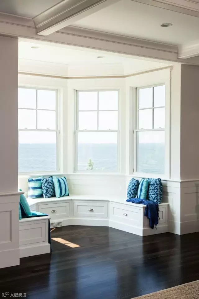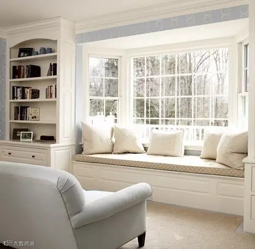 这种飘窗相对来讲比较常见,看书发呆什么超有feel,家里有客人来也可以在此落座,绝对是一件让你的朋友为之羡慕的事。