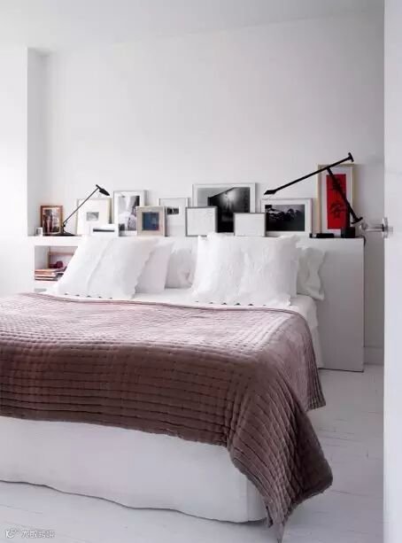 ▲简单大方,令人喜爱──只需在床头上方设计嵌入式层架。