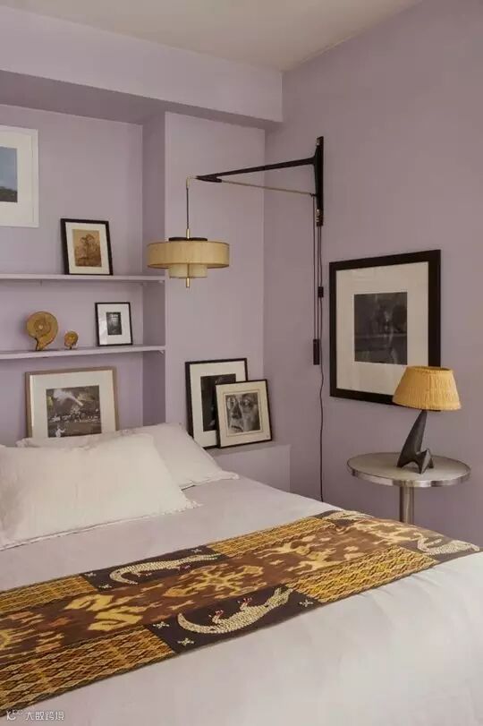 ▲这里采取了相似概念,但床边设置的是实际的衣柜。床边的小壁龛是一个很棒的点子,具备床头柜的功能,却不占用任何空间。床头后方的花草图案设计令人目不转睛,有谁能抵挡它的魅力呢?