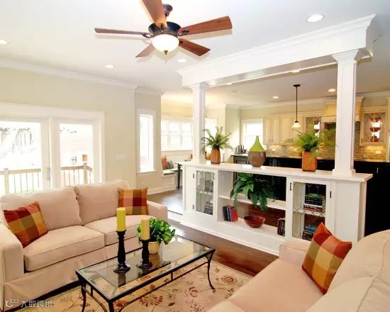 ▲在厨房和客厅之间,打造一个造型独特的隔断也是不错的选择~收纳与美观兼得。