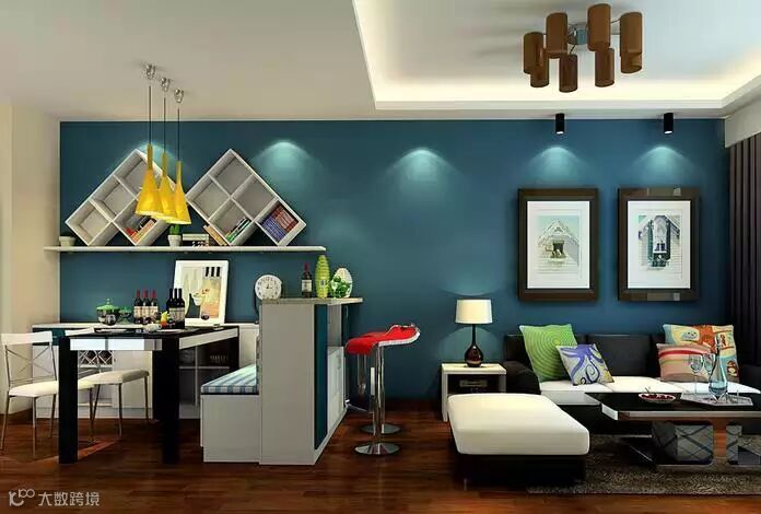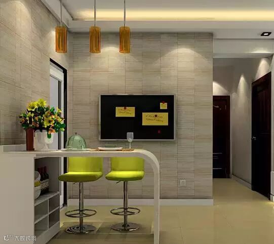 设计解析:利用吧台来做客餐厅隔断,既达到了区分空间的目的,更为居室创造了艺术与品位相融合的空间。