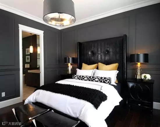 卧室的颜色不像厨房和客厅,卧室的颜色应该是能让人放松的。而别致的黑色和白色是一个很好的选择,黑白卧室看起来既时尚又流行。