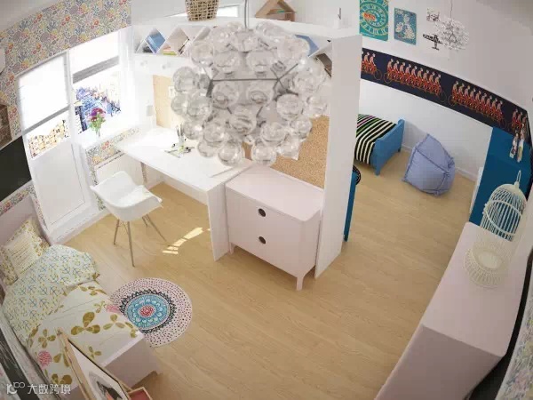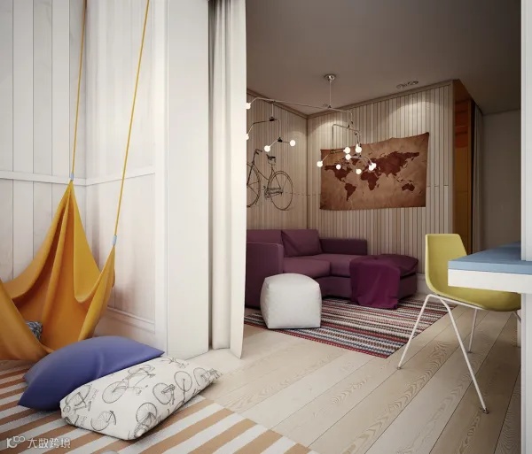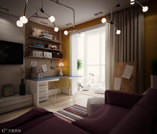 2 | 第二个房间也许会最适合一个更年长的女孩,出自设计师Masha Gluzdakova。这个足够大的空间给姐姐有了一定的自由空间。