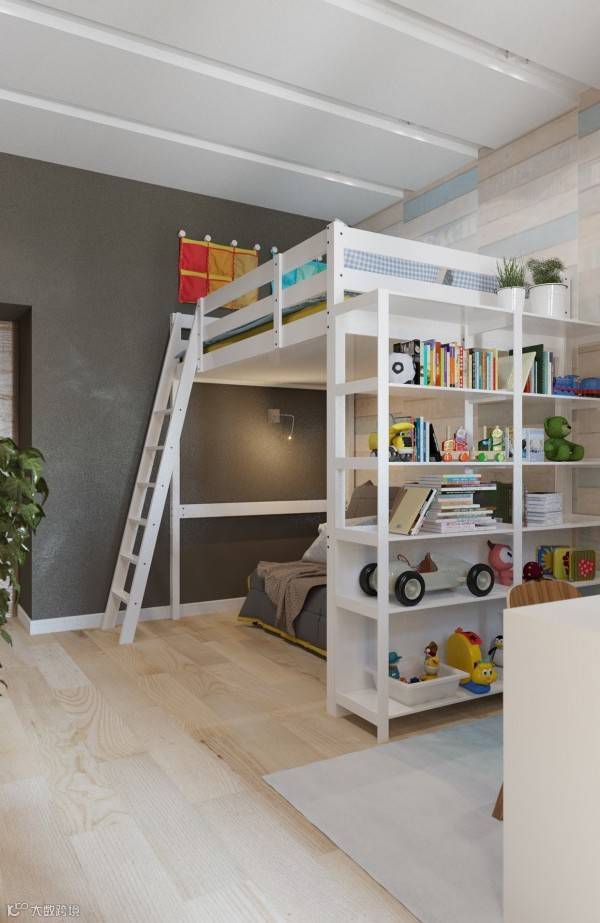 4 | Masha Gluzdakova设计师最后一个房间是最小的,但是完全的现代化设计手法。定制的腾空白色木板床和床下松软的沙发,给天性好动的小男生和他的小伙伴提供了一个舒适的娱乐环境。