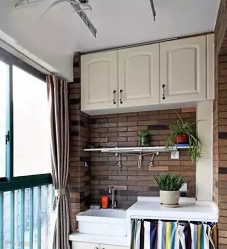 美观度瞬间提升不少阳台除了放置洗衣机外,其收纳作用也不可忽视。无论是上图一样的柜子还是简单的搁架都能放上不少的物品,如果嫌弃东西杂乱不妨加上个帘子之类的来遮挡遮挡。