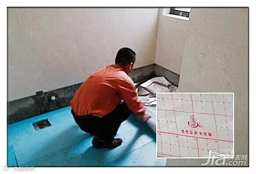 到达现场后,卫浴间的墙砖已经铺装完毕,地面也已经完成了找平和防水工程。地暖工作人员很顺利地开始了地暖铺装工作,这一层看似普通的蓝色泡沫塑料是什么呢?事实上,我们最担心的就是暖气来得慢、散的快,而这层板就是起到保温作用的保温板。工作人员根据并卫浴水槽凿洞,将地面铺满。