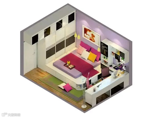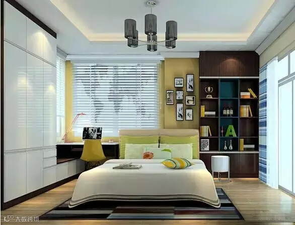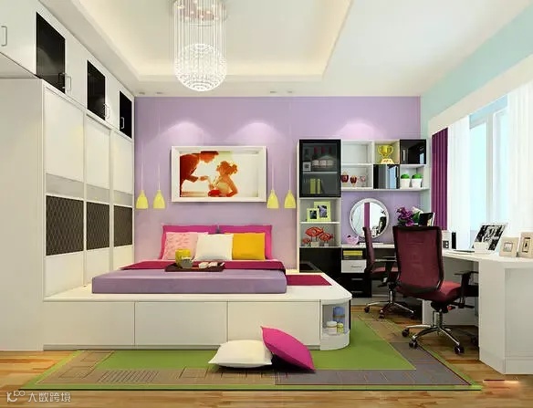 房间另一侧做一个转角矮柜,做工精细,是女生最喜欢的闺房。