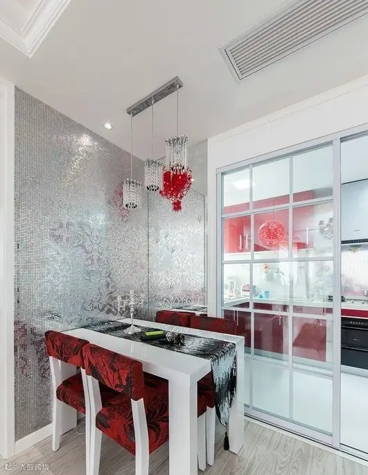 餐厅装修,背景墙很炫吧,餐厅虽小,但是小两口过日子,足够了。