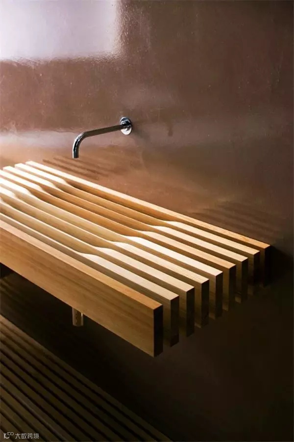 NO6.一款极简的洗手盆设计,白色和原木色的搭配很默契。