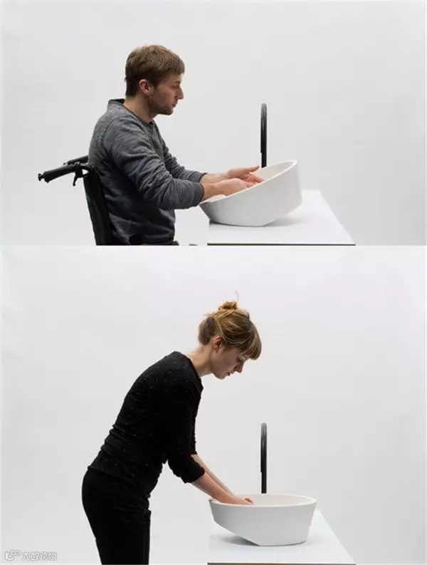 NO3.Gwenole Gasnier设计的一款适合所有人的洗手盆,一个斜角,满足了儿童和坐着轮椅的人的使用。