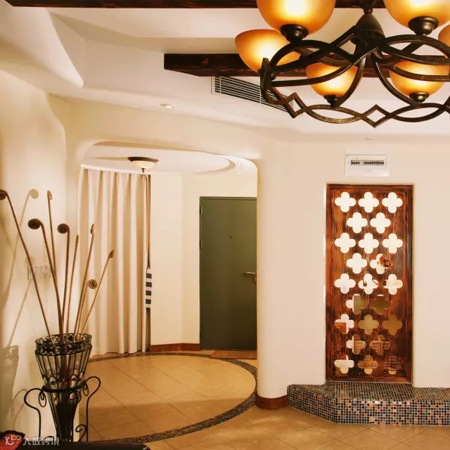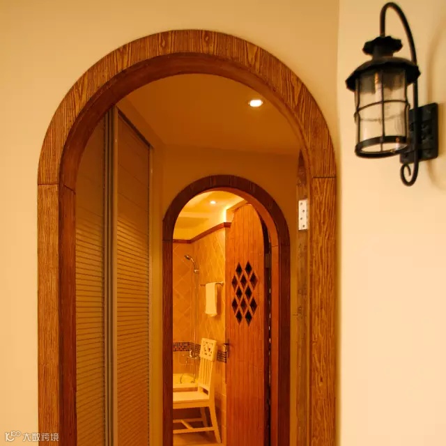复古的铁艺灯,灯照之余也是一个不错的装饰,随处可见的拱形木质门,成为地中海中标志性造型。