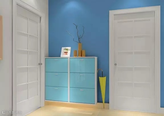 粉蓝色的鞋柜,给人快乐的感觉!那么多的格子,鞋子多多也不怕。