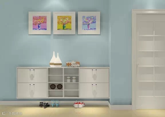 白色的鞋柜上摆放特别的装饰画,可以向客人展示主人的审美趣味哦。