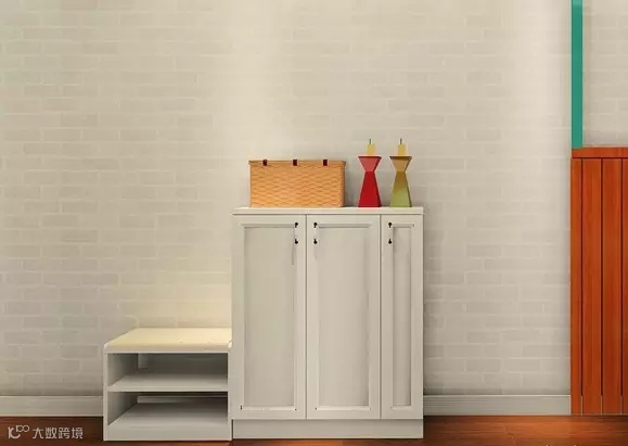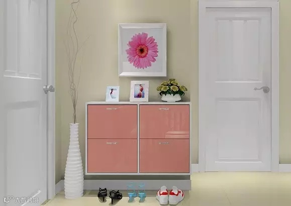 鞋柜和墙面间有小空隙,可以放置苗条的花瓶,让空间更漂亮。