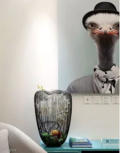 业主没有挂自己的照片,而是挂上了一副鸵鸟先生的照片,是喻示自己还是什么,只有主人自己知道。其实每个人在特定的时候都是鸵鸟。
