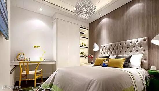 卧室背景墙采用了文艺风格的设计,充满意趣。