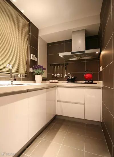 非常整洁大气的橱柜和油烟机,有种清晰自然的感觉。