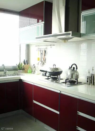 酒红色烤漆橱柜,不错吧,有没眼前一亮。