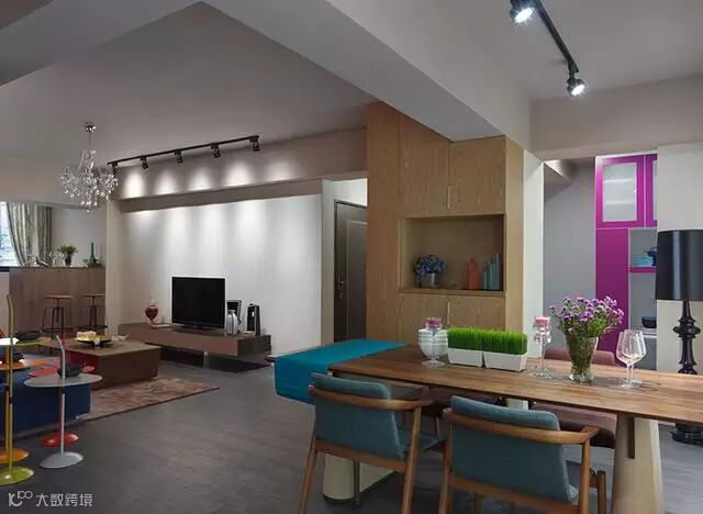 首先在开放式的客餐厅以原木家具搭配红色系打造公共空间的舒适感,紧接着在主卧室以沉稳的紫色系佈局,让屋主晚上休息时能更快进入宁静的睡眠状态。另外在儿童房的部份,则是以玫红色为主题,启发孩子们的想像能力!最后到了书房空间,则是回归到大自然的绿色植物,让整个家的气氛发挥流畅的循环。