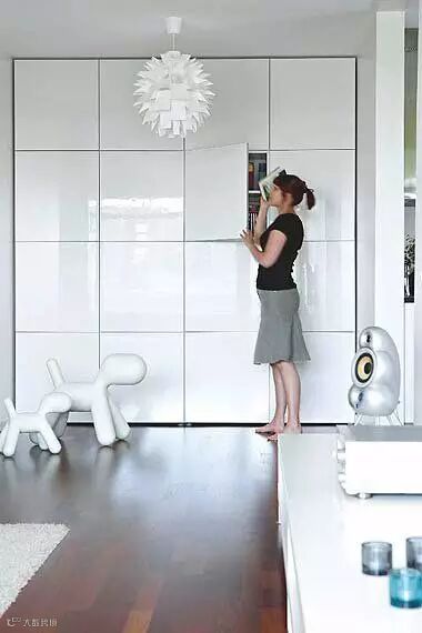 这组图片是最符合我们「完美极简大柜子」的要求“顶天立地、通顶柜门、光滑板面”的极品中的极品。