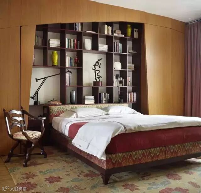 连接两边柜体的书柜,增加卧房的藏书空间,是爱书之人的福音。