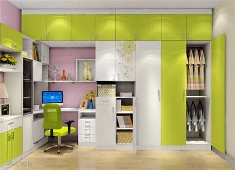 当然,也可以做一个衣柜+书柜的L型柜子,从卧室里隔出一个小小活动间。