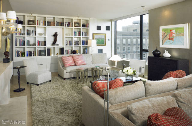 客厅里设置书桌的最佳地方就属电视柜旁边了。无论是与电视柜并排,还是呈直角状,都能很好地利用空间。并且,设置书柜自然而然就与电视柜一起了,没有违和感。