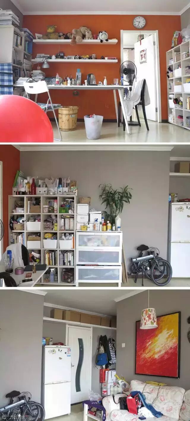 因为仅仅47平米的一居室,面对每天不断的淘宝快递,即使再增加47平米也装不下老婆的衣服。另外,加上男主人的买书癖,与日俱增的书本更是让已经满载负荷的小屋严重超载。