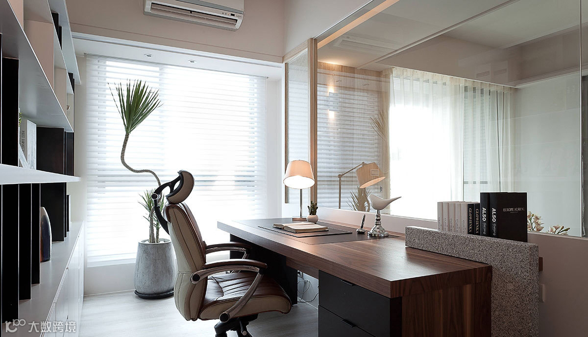 改以清玻隔间的穿透感书房,可拉长空间景深增添视野层次。