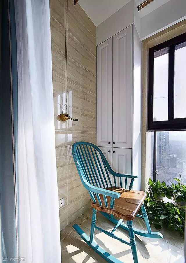 利用大大的阳台窗体,尽享阳光带来的欢愉,这个小阳台的主题便是阳光,在狭小的空间内,巧妙的放入合适的桌椅,桌椅全部面向外侧,白色调清新淡雅,坐在着,同桌上的花儿一道喜迎阳光的恩泽。