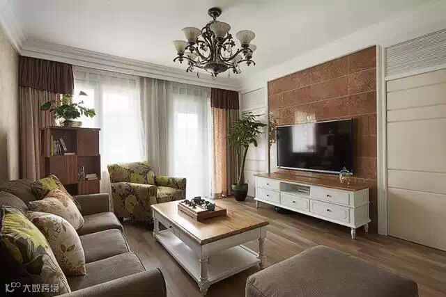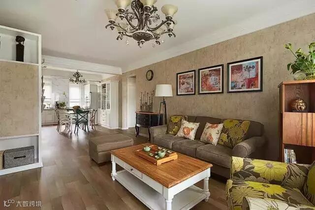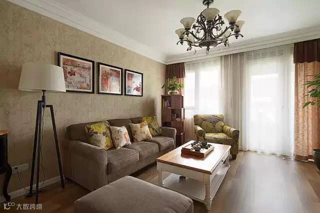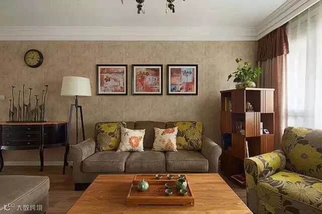 客厅的布艺沙发选择了比较稳重的颜色,墙上的三幅画都是网购,包括那个美式的挂钟。