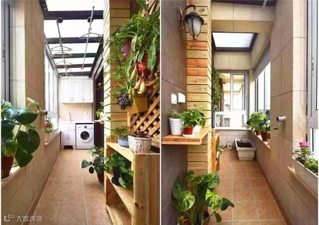 阳台的绿植和阳光房似的装修,让整个阳台充满了生机。