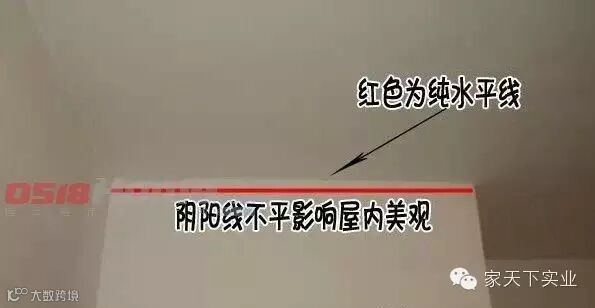 2、检查屋顶和墙面的阴阳角线是否是水平线,如果不是,在今后装修中要先用粉刷石膏找低再用耐水腻子找平即可。