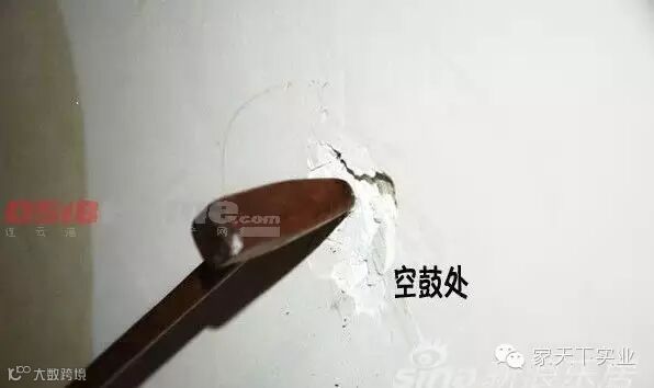 2、检查墙面是否有空鼓,用小木锤或其他东西敲墙,敲到空鼓时发出的声音不实,很容易就可以听出来。做上记号,装修时用腻子填平。