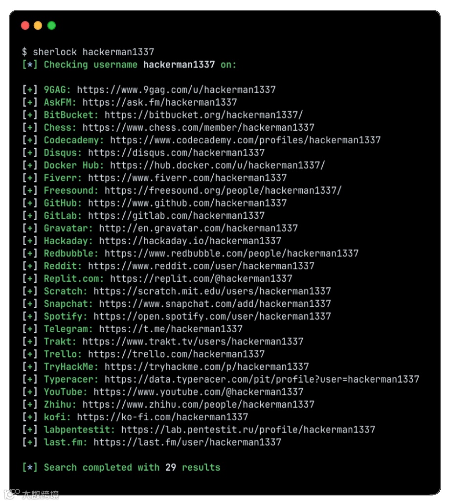一句话简介:通过用户名跨社交网络追踪社交媒体账号