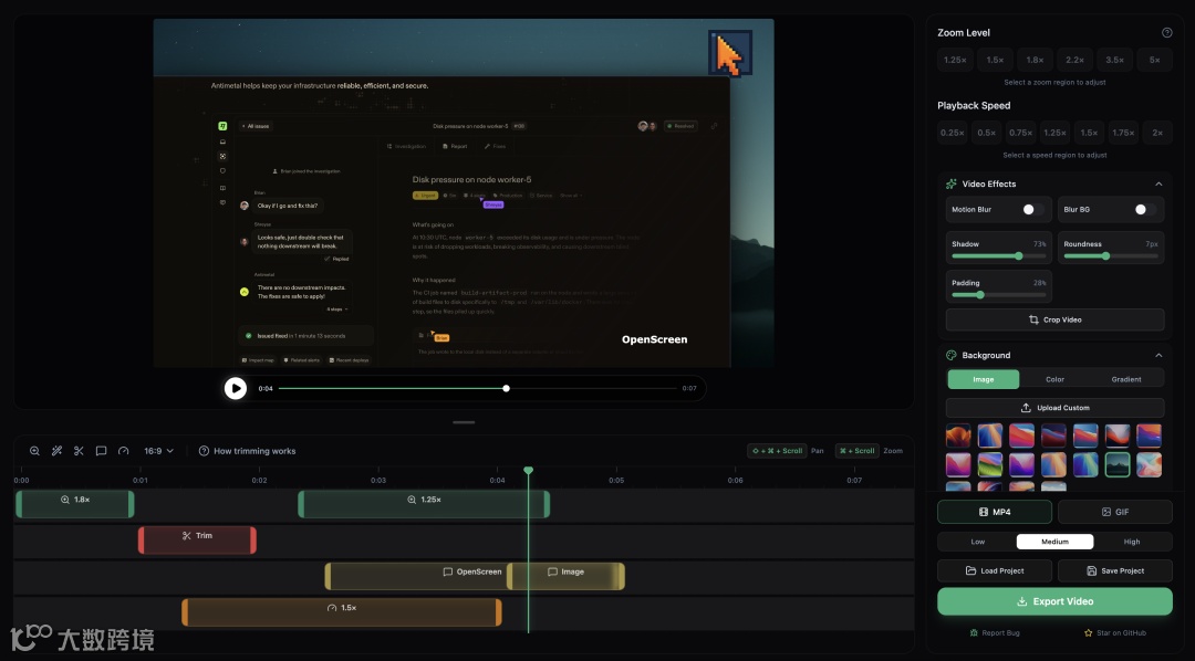 一句话简介:免费创建惊艳的演示视频。开源、无需订阅、无水印,且可免费用于商业用途。Screen Studio 的替代方案。