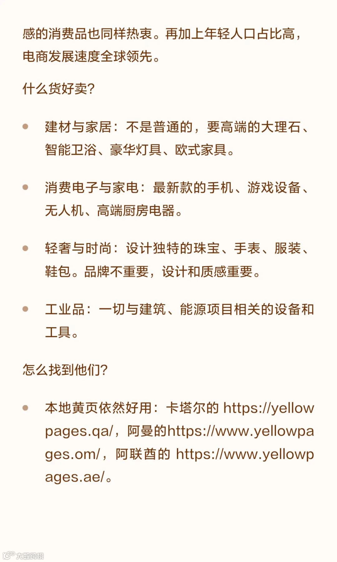 所以,如果你做的是以下类型产品,中东值得重点看: