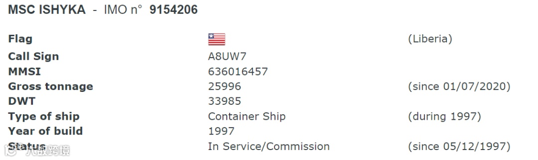 伊朗国家媒体确认被袭船为“MSC Ishyka”号(IMO:9154206,1997年建造),该船悬挂利比里亚国旗,长208米,运力2500标箱,目前停泊在巴林附近海域。袭击致其起火,MSC尚未回应。该船隶属于MSC中东支线Loop 4航线。