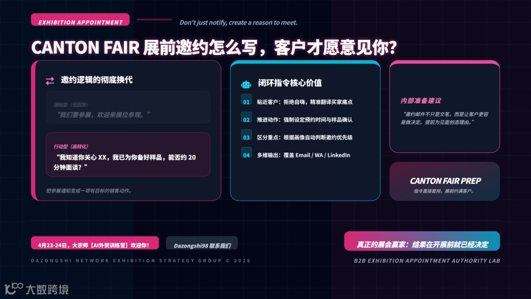 本文提供可直接套用的展前邀约指令: