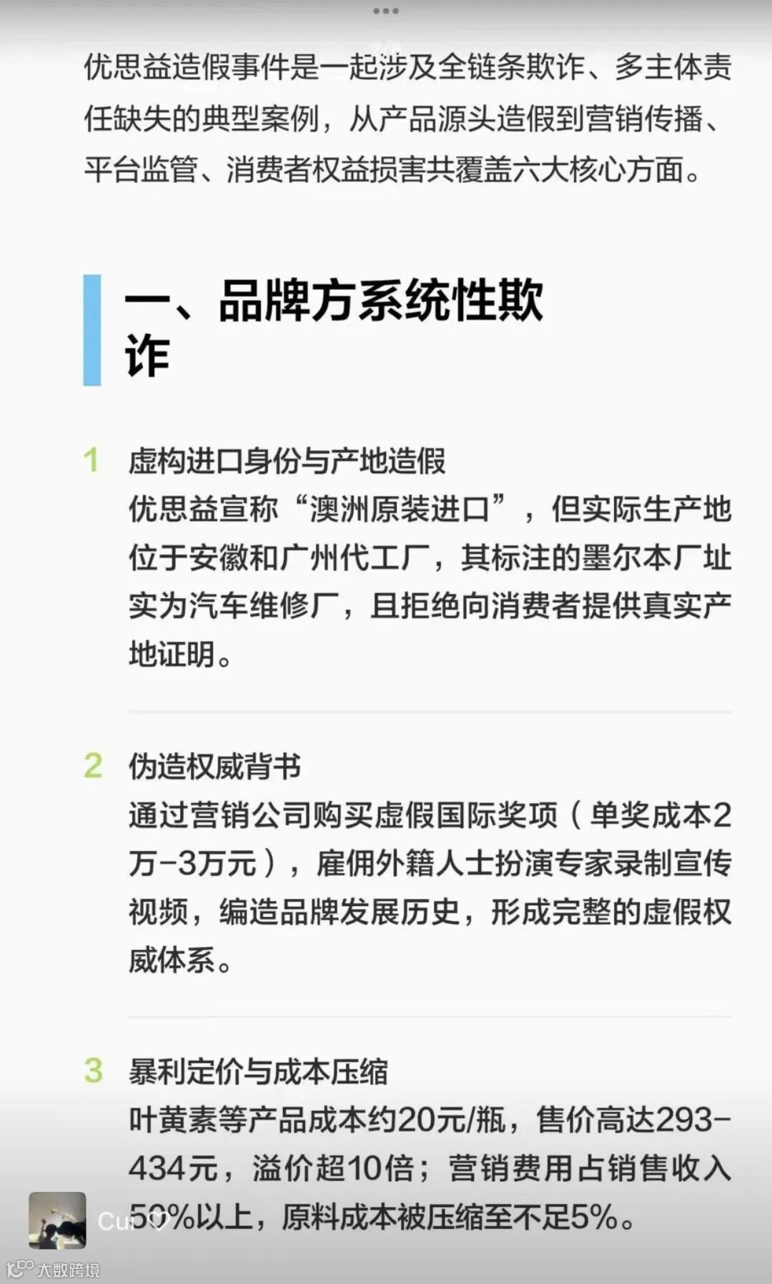 产品包装标注的墨尔本地址实为海外公司注册地,与实际运营的汽车维修厂不符,此为优思益过失。央视报道在进出口商品专业判断上存在明显偏差。伪造权威背书问题在保健品行业长期存在,属于行业共性风险。