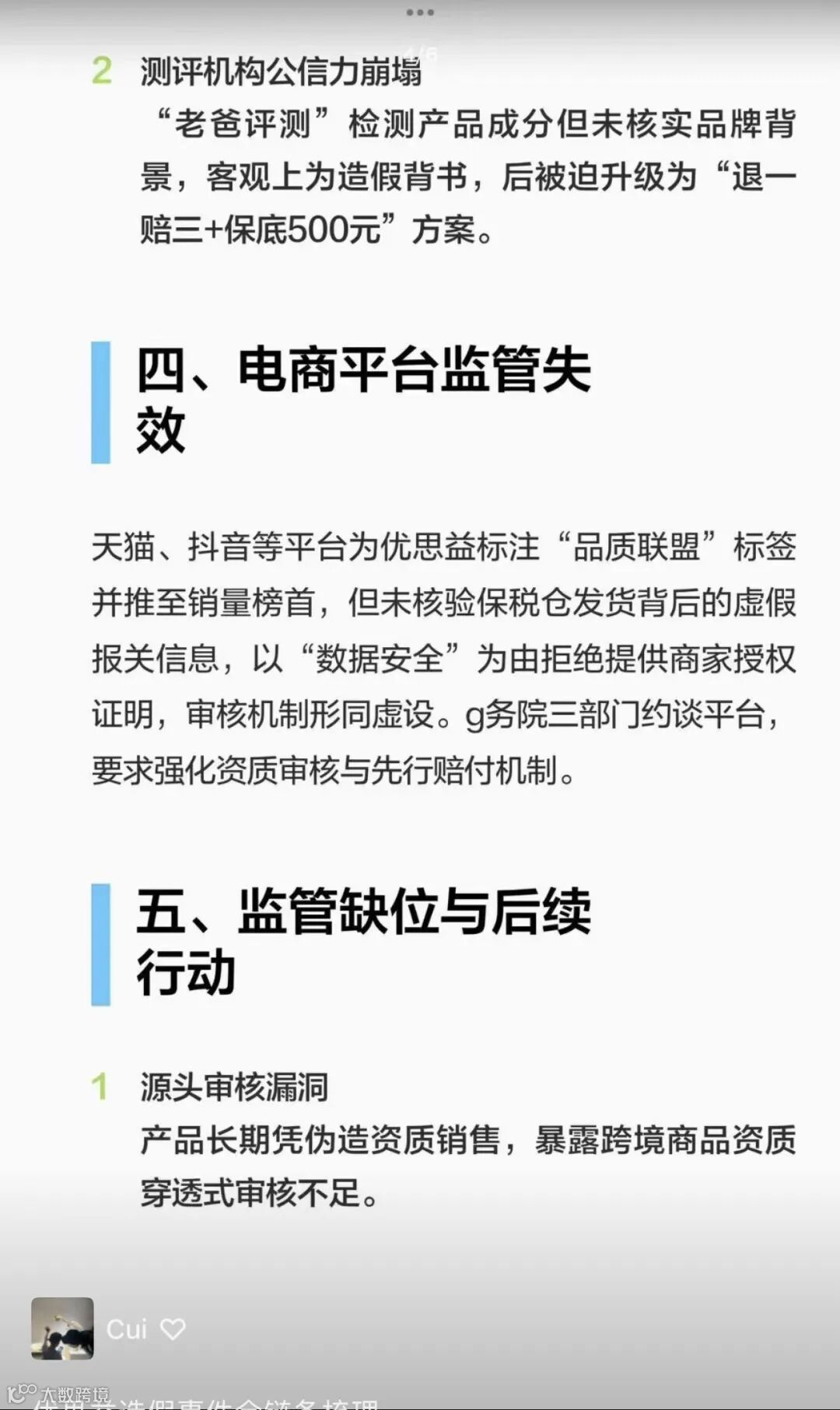 优思益补铁口服液确由安徽马鞍山工厂生产,商品详情页已如实标注中国产地。除该产品外,其他产品均产自海外。央视关于产地造假的报道依据不足,仅引用索象单方说法有失客观。企业未能提供进口批次原产地证明,但可通过海外工厂委托加工协议自证。建议海关总署建立跨境电商进口膳食补充剂海外工厂注册管理制度。
